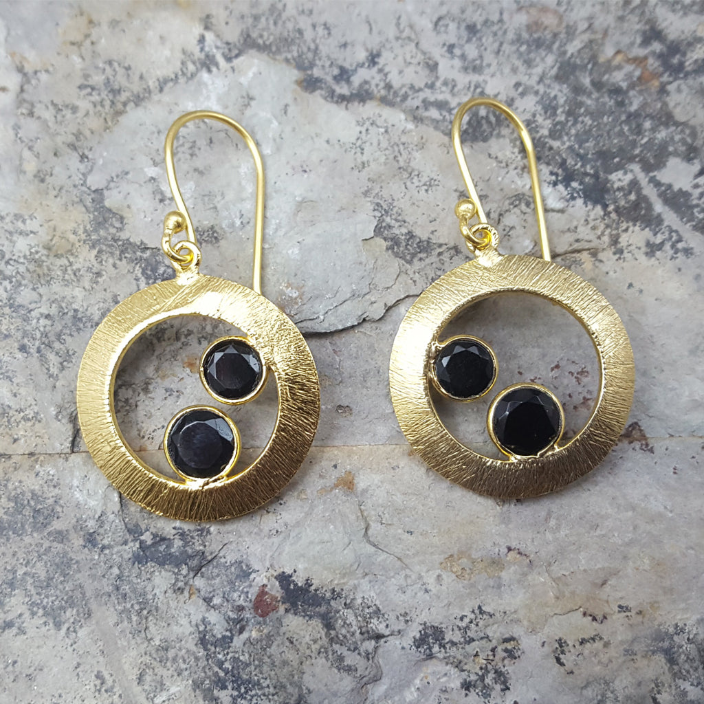 Cherry Black Onyx Gold Earrings