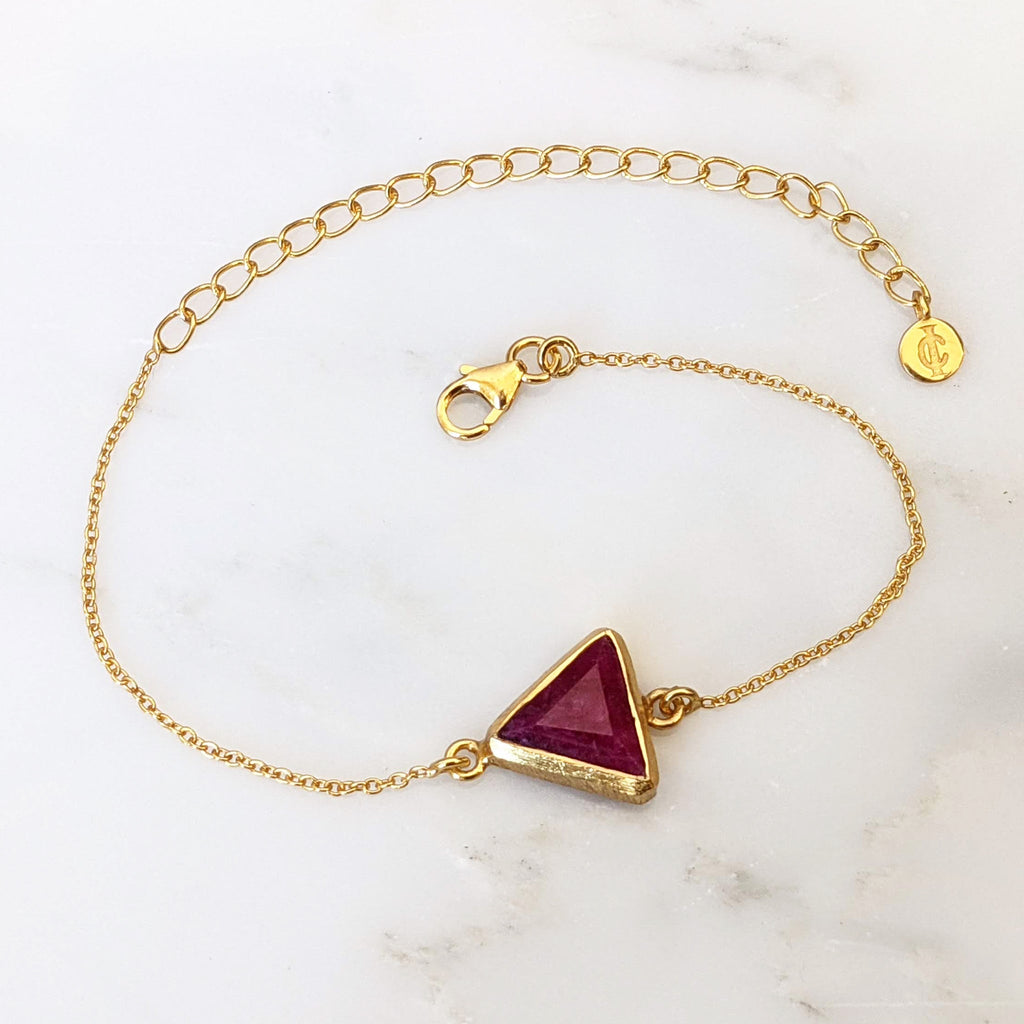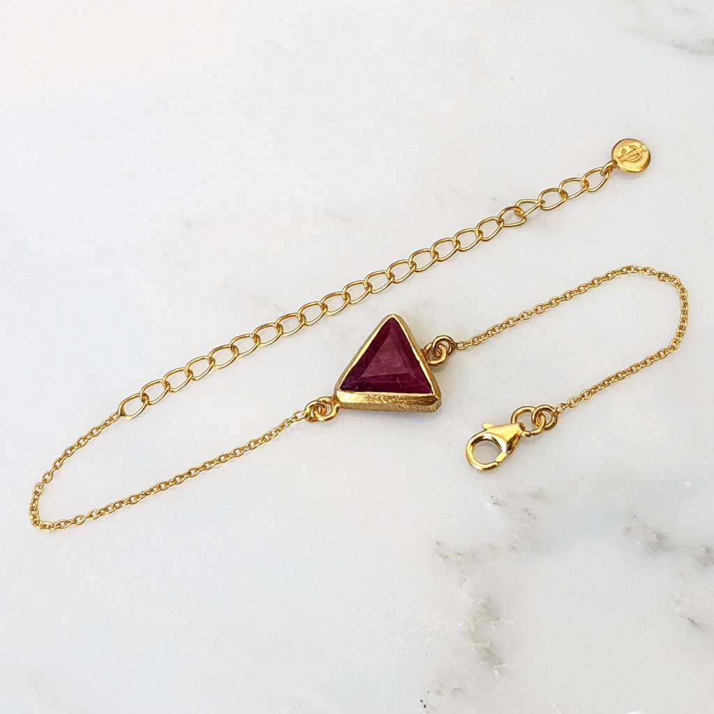 Triangle Ruby Gold Chain Bracelet